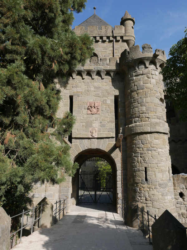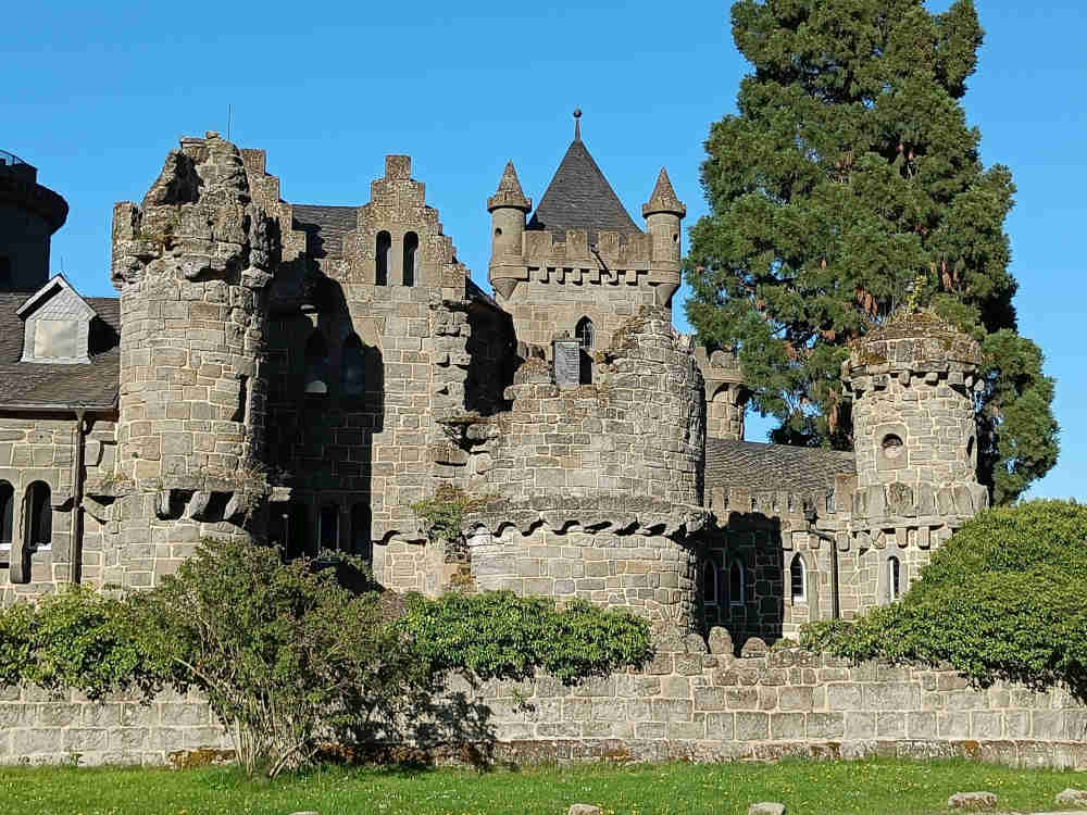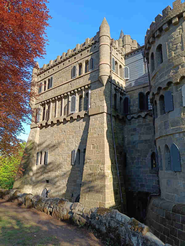 Barockes Lustschloss als Nachahmung einer schottischen Ritterburg, vierflügelige, künstliche Ruine in der Form einer mittelalterlichen englischen Burg, Wohnräume mit reichhaltiger Ausstattung