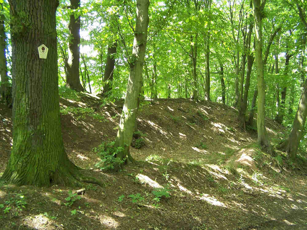 Erhöht über dem Dorfe thront die ehemalige Wehrkirche. Ihr ältester Teil dürfte der Turm sein. Der obere Stock ist aus Fachwerk errichtet, mit den für das 16.Jh. typischen doppelten schrägen Wandstreben (Andreas-kreuze). Sein Grundriss ist quatratisch, drei Fensteröffnungen lassen in ihrer Form und Gestaltung an die Tiefenorter Kirche denken.