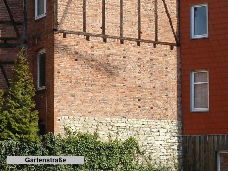 Das Alte Dorf wurde erst nachträglich durch eine separate Stadtmauer einbezogen, die sich im Süden an die innere Befestigung anschloss und durch vier Türme verstärkt wurde. Die herzogliche Neustadt hatte lediglich um die Kommende (Deutsch-Ritterorden) eine Mauer. Zugang erfolgte über das Marientor.