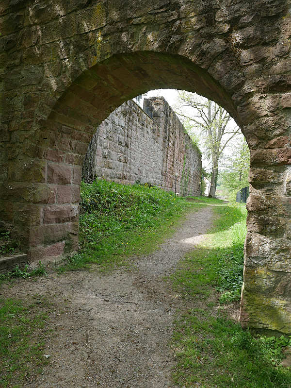| Der Bergfried wurde vor der Mauerflucht errichet. | |