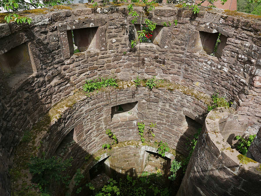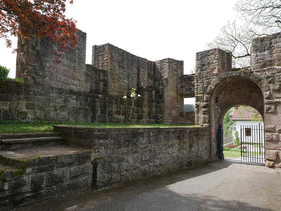 Spätstaufische Anlage, Bergfried, rechteckige Umfassungsmauer, Wendeltreppenturm