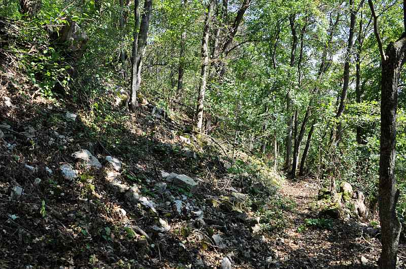 Erhalten: Mauerreste der Längsseite eines Hauses