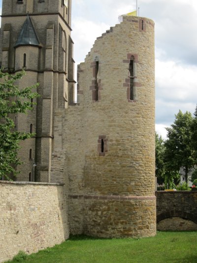 Die ehemalige Wasserburg wurde im 13. Jh. erstmals erwähnt. Sie entstand auf dem Gelände einer römischen Prachtvilla des 4. Jahrhunderts mit einem reichausgestatteten Wasserbassin (60 x 18 m). 71 der ursprünglich 112 umgebenen Hermen sind im Rheinischen Landesmuseum Trier zu sehen.