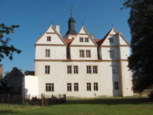 Kompaktes, zweigeschossiges Renaissanceschloss über fast quadratischem Grundriss. Zentral vor der Hofseite hoher sechseckiger Treppenturm mit barocker Schieferhaube und Sitznischenportal. Auf Hof- und Gartenseite jeweils drei zweigeschossige, das Satteldach durchdringende Zwerchhäuser.