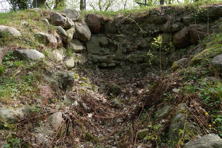 Erhalten: Turmhügel, Gewölbe, Turmsockel