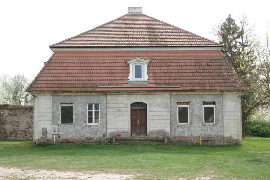Rittergut und eigener Gutsbezirk zu Bietikow gehörig, eingeschossiger elfachsiger rechteckiger Putzbau auf Sockelgeschoss mit Mansarddach, freistehende Kavaliershäuser