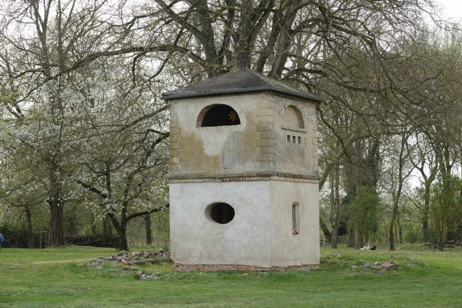 ehemaliger Gutspark mit Ruine eines oktogonalen Teehäuschens, um 1800