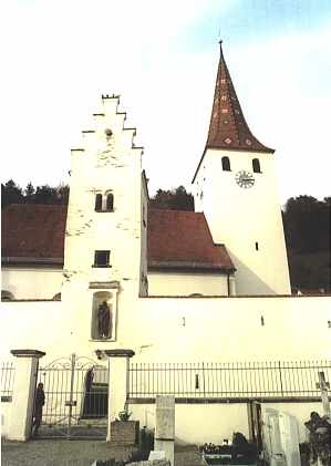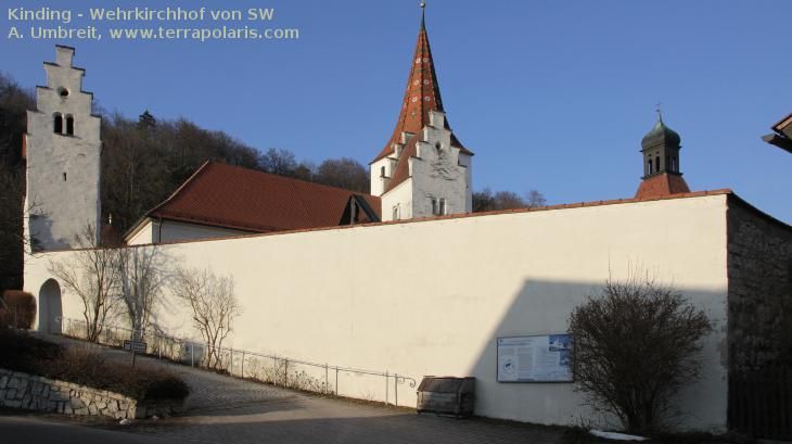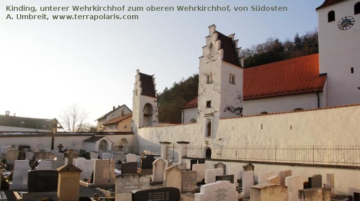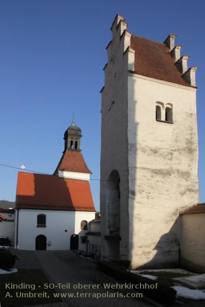 Kirchhofbefestigung mit doppeltem Bering, Wehrgänge, drei Wehrtürme, stark befestigte Südfront mit Torturm