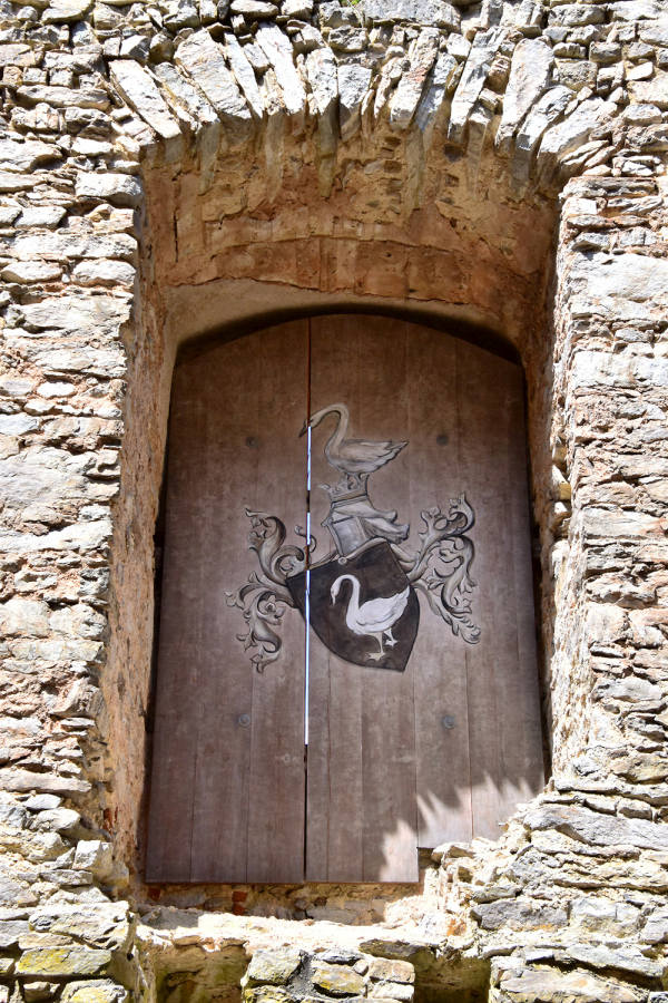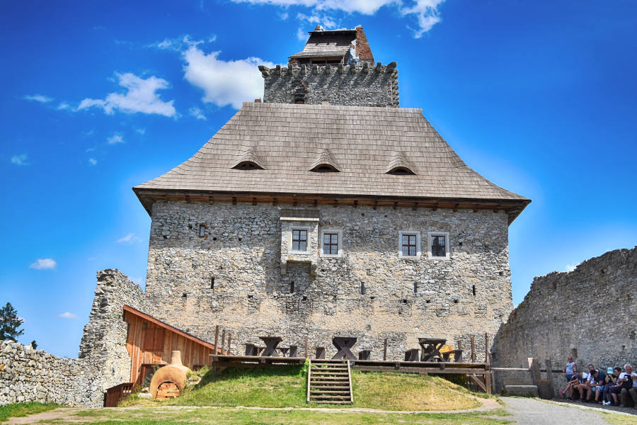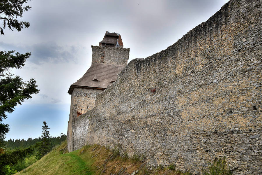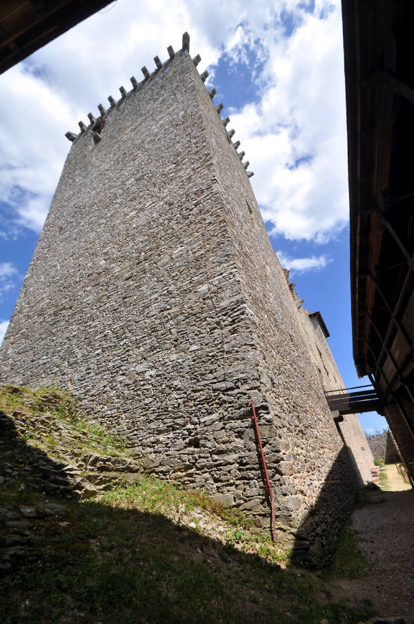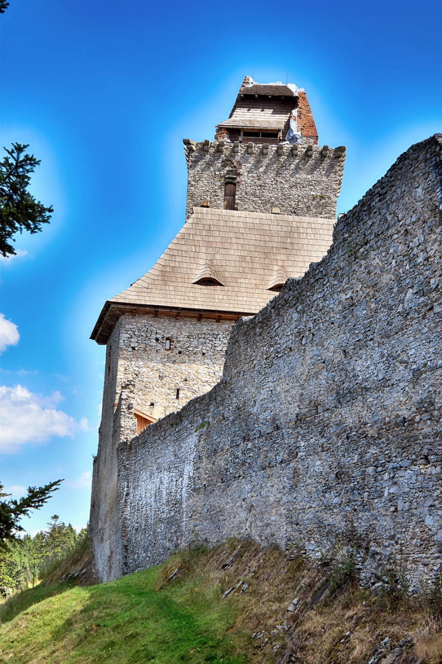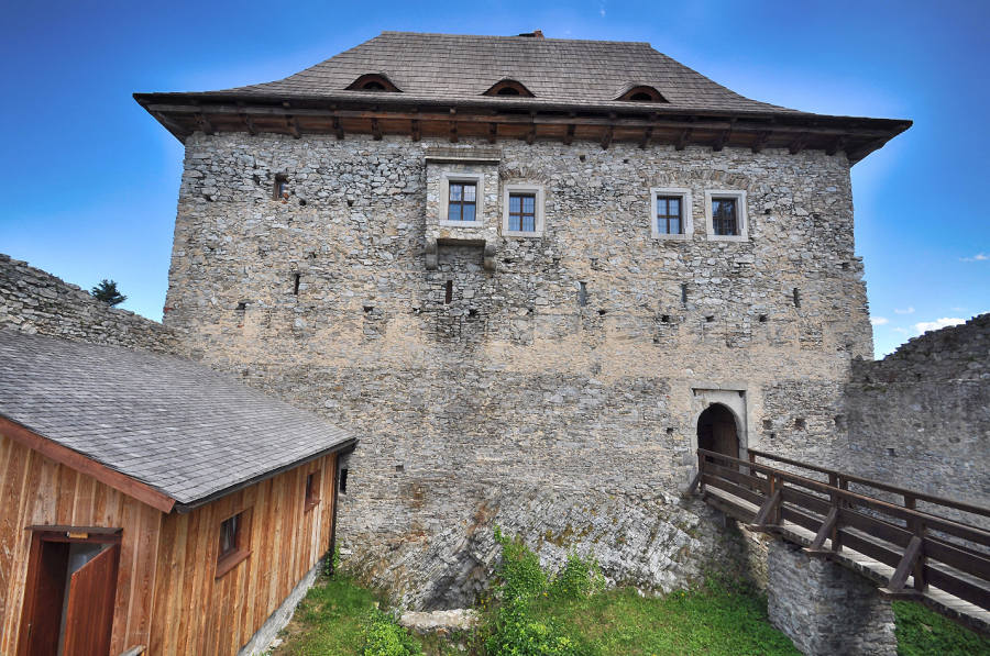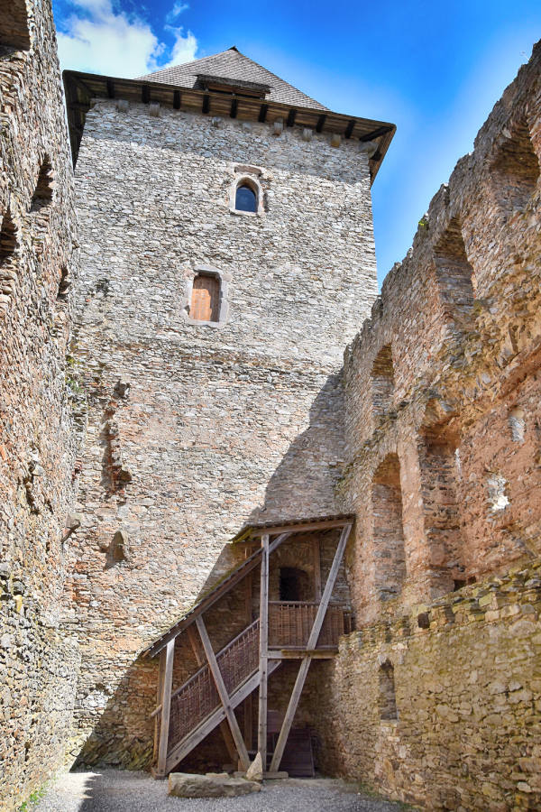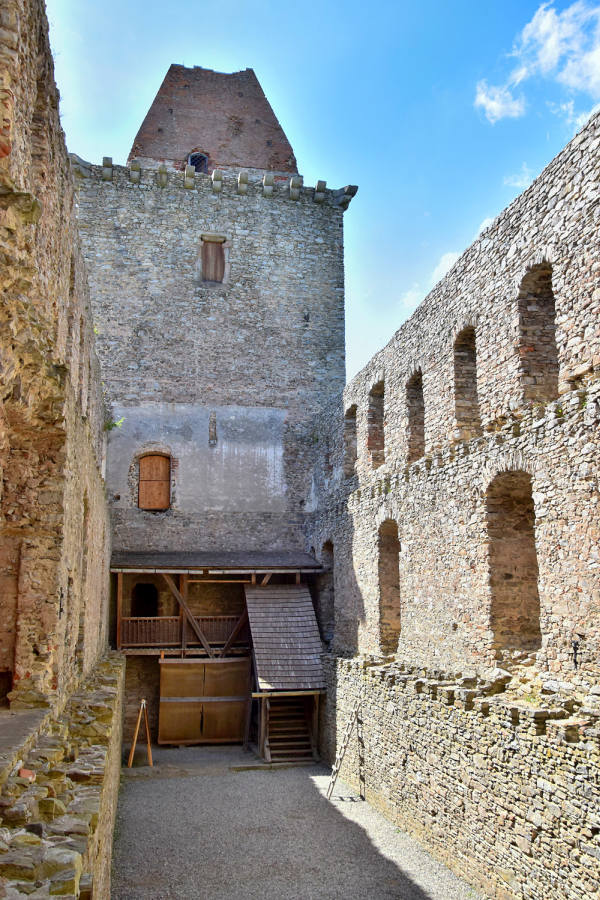 Gotische Burganlage mit zwei Bergfrieden im Osten der Anlage