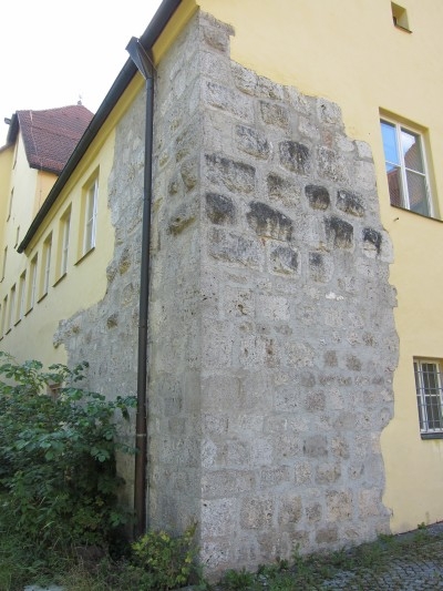 Von der ursprünglichen Burganlage blieben nur in Gebäude und im Bering verbaute Mauerreste erhalten.