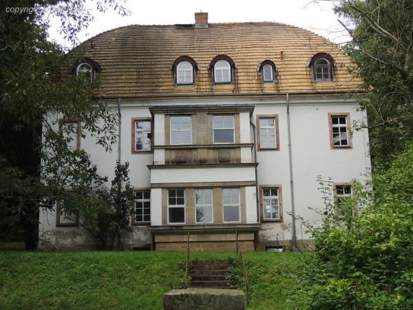 Rechteckbau mit vierachsigem Mittelrisalit und Bogenfenstern